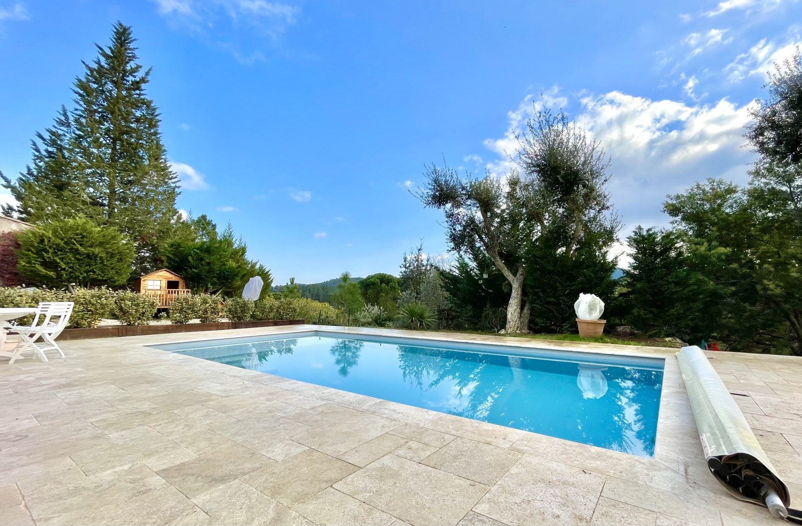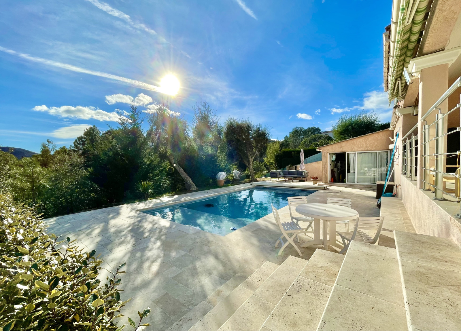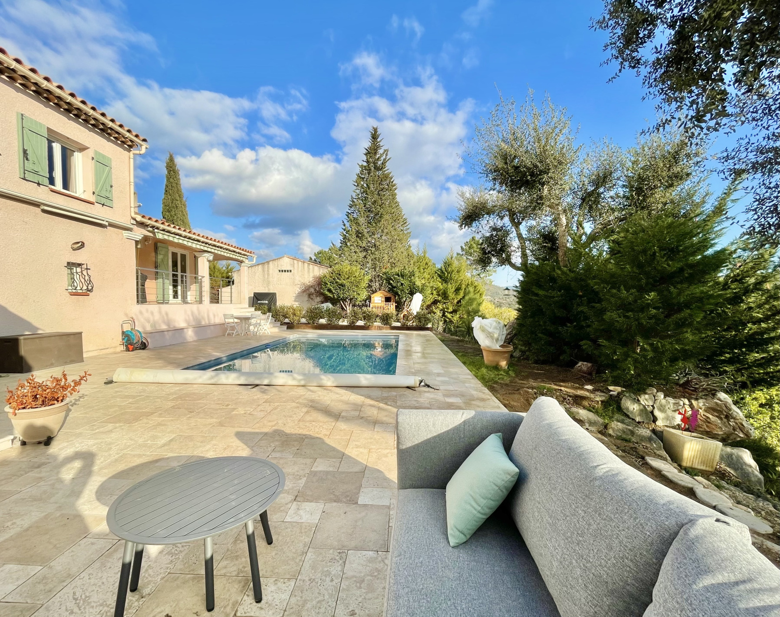 VENDU PAR NOTRE AGENCE - En EXCLUSIVITE dans votre agence L'IMMOBILIER CHEZ CECILE, maison à vendre sur MONTAUROUX, à 3 minutes en voiture de l'accès autoroute, cette VILLA INDIVIDUELLE d'environ 102 m² habitable bénéficie d'un séjour d'environ 40m² avec cuisine équipée donnant directement sur la terrasse SUD avec piscine, pool house et VUE DEGAGEE, à l'étage 3 belles chambres, une salle de douche (à l'italienne), un wc indépendant. Un vaste garage fermé avec espace buanderie et une pièce "bonus" aménagée comme une chambre d'adolescent avec lavabo et wc. Le tout sur un terrain d'environ 1076m² sans vis-à-vis, au calme absolu. Chalet en bois, nombreux stationnements. Double vitrage, climatisation réversible, panneaux solaires, tout à l'égout. Secteur résidentiel et calme. Emplacement très recherché. A seulement 15 minutes de Mandelieu. PRIX DE VENTE : 532 000€ FRAIS D'AGENCE INCLUS ( honoraires charge vendeurs). Pour en savoir plus, contactez votre agence L'IMMOBILIER CHEZ CECILE au 06 63 70 96 47.
